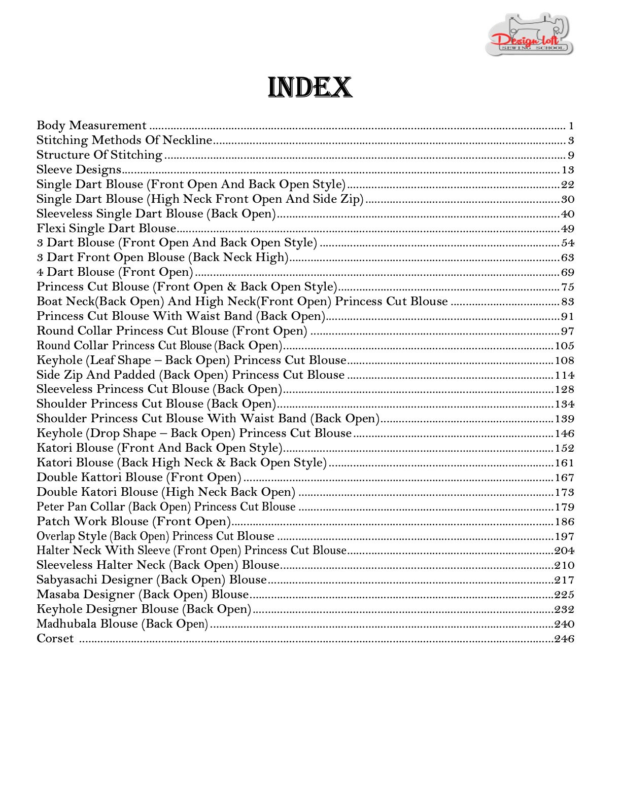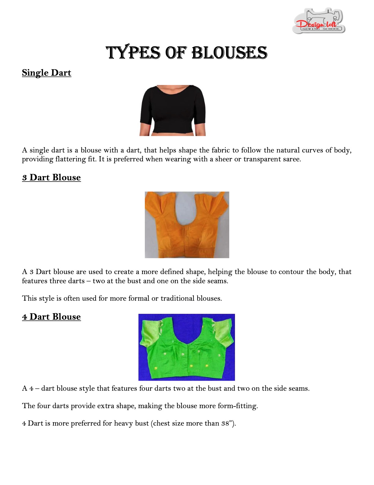 pattern making, and detailed blouse construction. You will learn how to create 30 district blouse designs,