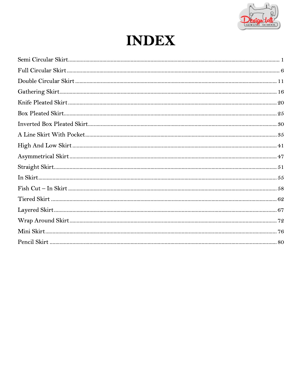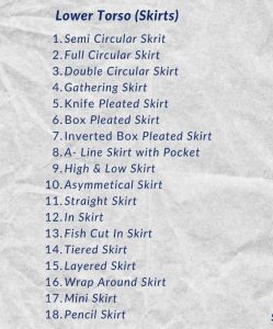 • Fitted Looks: Straight Skirt, In-Skirt, Fish Cut, Pencil Skirt, Mini Skirt
